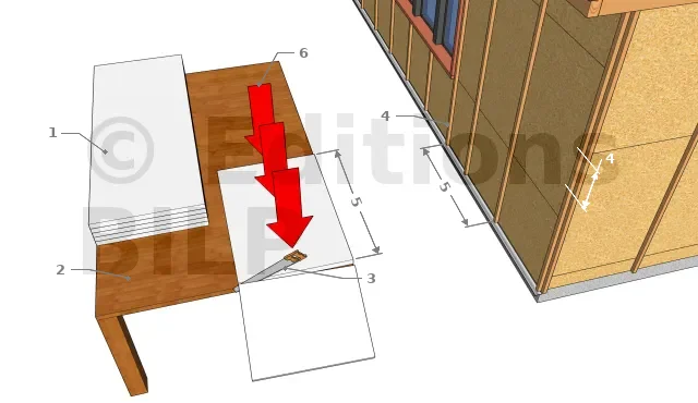 - Le grand côté du panneau est parallèle au sol pour limiter les chutes et il doit être disposé de manière continue tout le long du mur.