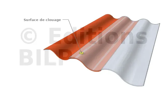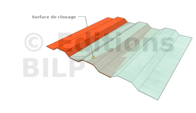 Installez le second panneau à coté du premier. Superposez-les sur la dernière partie ondulée. Fixer temporairement d’abord tous les panneaux, et après alignement, clouez définitivement au niveau des ondulations.