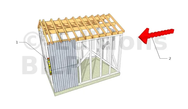 Commencer l’installation par le coté opposé au vent dominant (Bord gauche ou droit). Prenez bien votre temps pour installer correctement ce premier panneau. Assurez-vous qu’il soit bien d’aplomb pour maintenir l’alignement des prochains panneaux.