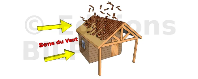 Dans le cas où l’on a un sous-dimensionnement des fixations ou un défaut de contreventement, un vent de vitesse moyenne peut susciter un basculement ou même un arrachement de l’élément ou de la construction en entier.