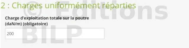 Si vous avez une charge uniformément répartie, il vous suffira de remplir la case qui va correspondre à la charge d’exploitation totale sur la poutre.