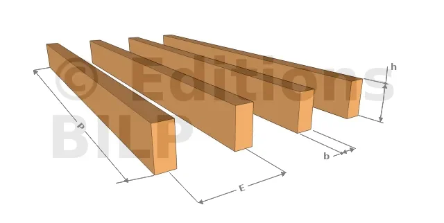 - 2ème méthode : vous connaissez l’entraxe E des solives et vous avez déjà choisi la section des solives