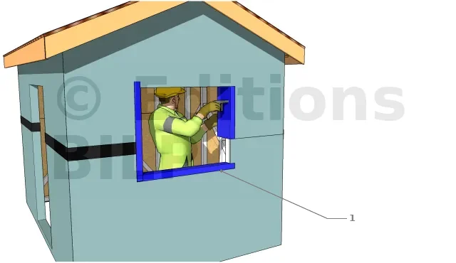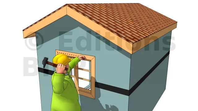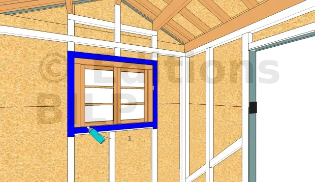 Puis mettre un joint de calfeutrage sur le papier goudronné ou le bardage au niveau des endroits où les encadrements de fenêtre seront cloués au revêtement. Cela permettra de réduire les infiltrations possibles. Et appliquer une couche de silicone autour des bords extérieurs pour bien sceller l’ouverture.