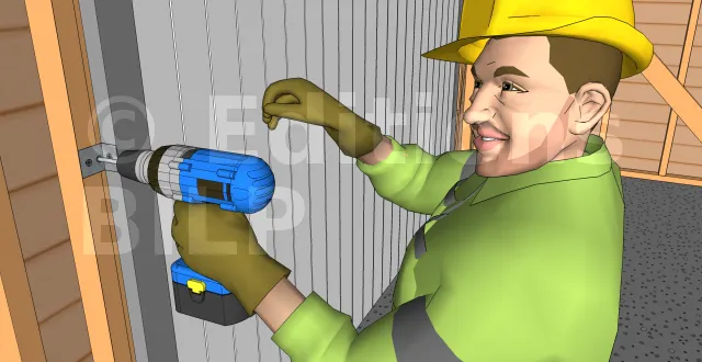 Une fois les coulisses en position, il faudra les fixer. Avant de passer à la fixation proprement dite, vous devrez choisir le mode de fixation des coulisses. En effet, les coulisses peuvent être fixées aux murs latéraux du garage ou au plafond de celui-ci. Dans notre cas, comme nous avons un garage sans plafond, nous allons donc fixer les coulisses aux murs latéraux.