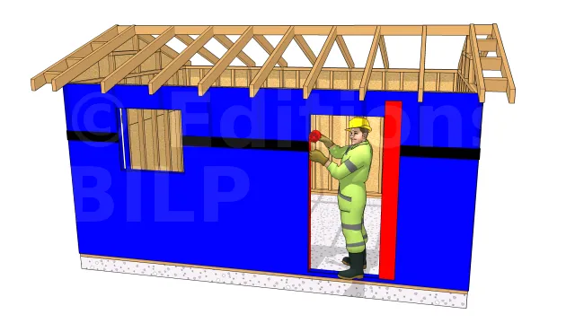 Utilisez des clous de types 8D galvanisés à intervalle de 30 cm pour fixer la moulure. Puis, à l’aide d’un couteau ou d’une scie égoïne, coupez les cales au même niveau que les montants.