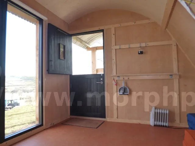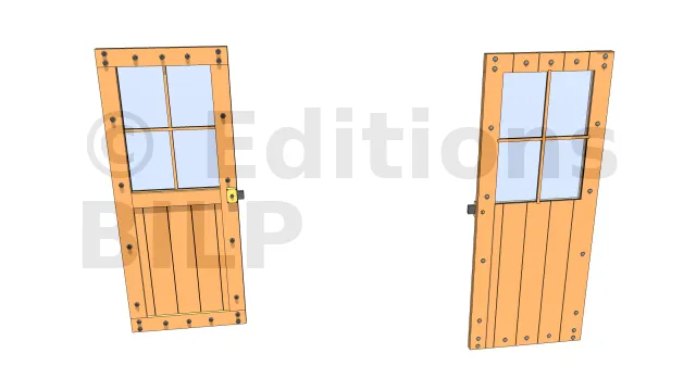 D’autres portes sont faites en panneau de bois (ici de l’OSB). Elles sont renforcées par des montants.