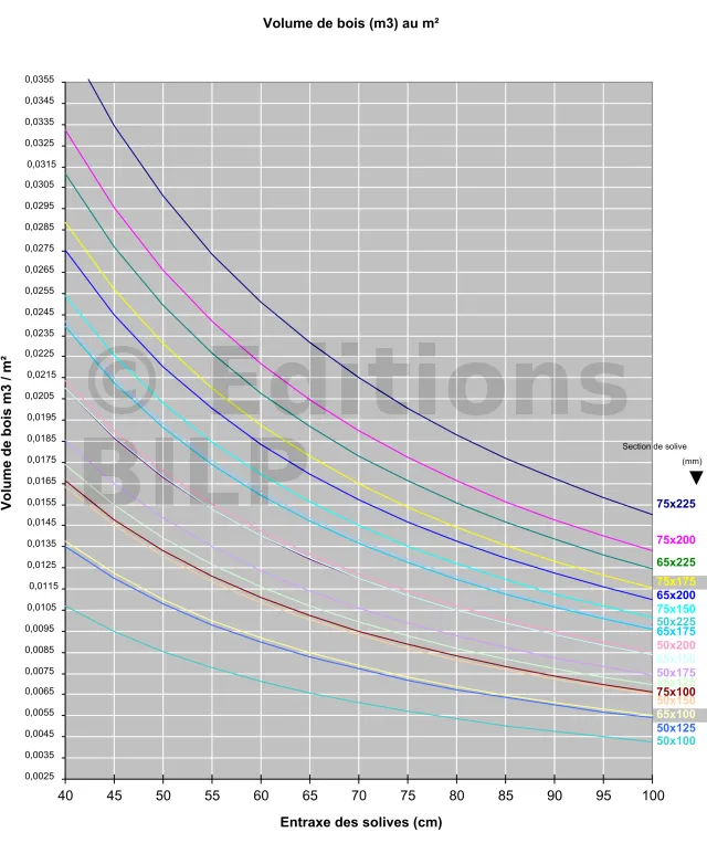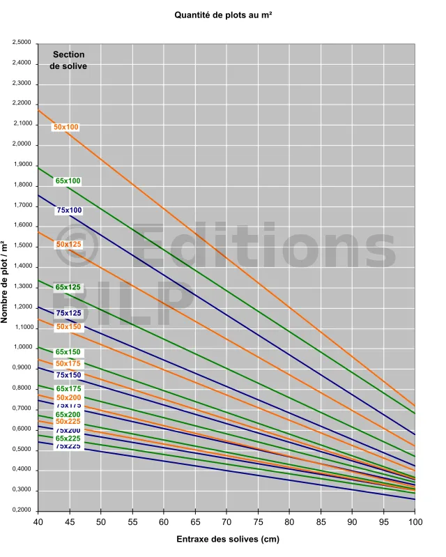 Par ailleurs, on ne choisit pas de réduire ou d’augmenter l’entraxe car celui-ci est déterminé par le platelage. En revanche, pour un entraxe donné, il est préférable de diminuer la section des solives, c’est-à-dire augmenter le nombre de plots.