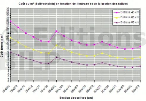 Pour le coût optimal, il convient de repérer la partie basse de la courbe et d’en déduire la section des solives.
