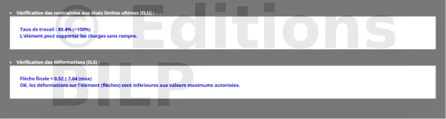 Après avoir rempli toutes les caractéristiques, l’outil effectuera les calculs et vous informera si la structure que vous souhaitez mettre en œuvre est viable ou non. Si les caractéristiques ne sont pas vérifiées, vous serez alors dans l’obligation de faire quelques modifications sur la section de la pièce, la portée de la pièce ou la classe de résistance, etc. par exemple.