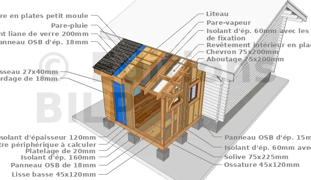 - Type de plafond : Panneau OSB ou particules 18 mm