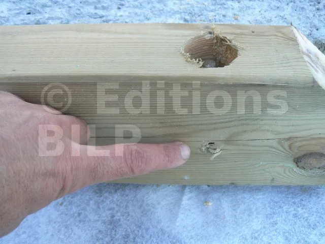 Un orifice latéral permet l’évacuation d’éventuelles eaux infiltrées. De plus, on prend la précaution de dérouler un film bitumeux sur le dessus des solives pour limiter ce risque.