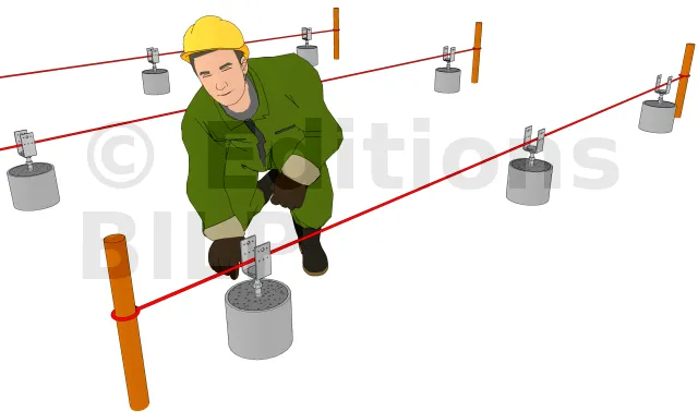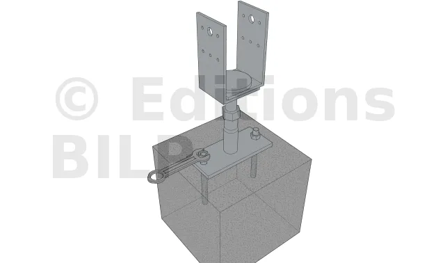 Pour la mise en œuvre, il existe deux types de techniques bien distinctes selon le modèle de pied de poteau réglable vario pour sa fixation au plot en béton :