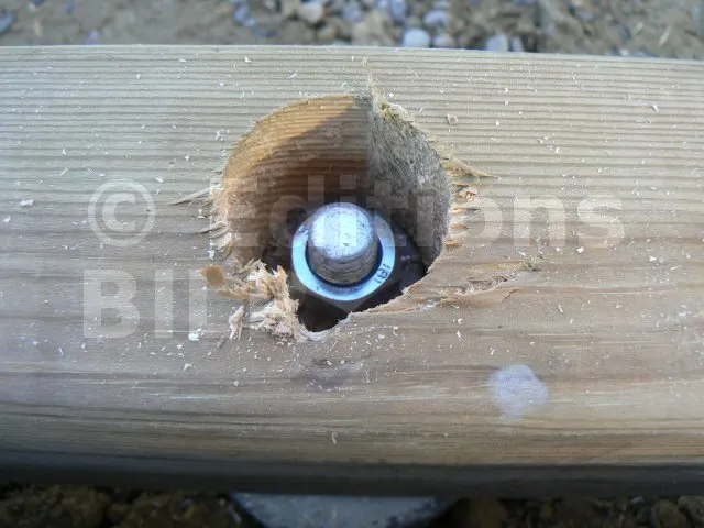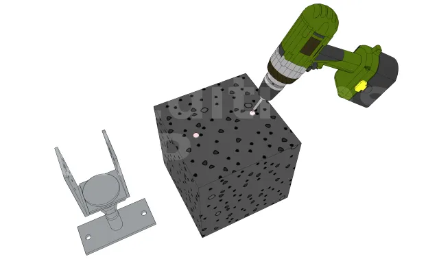 - 1. Perçage de la solive et du plot en béton en une seule opération